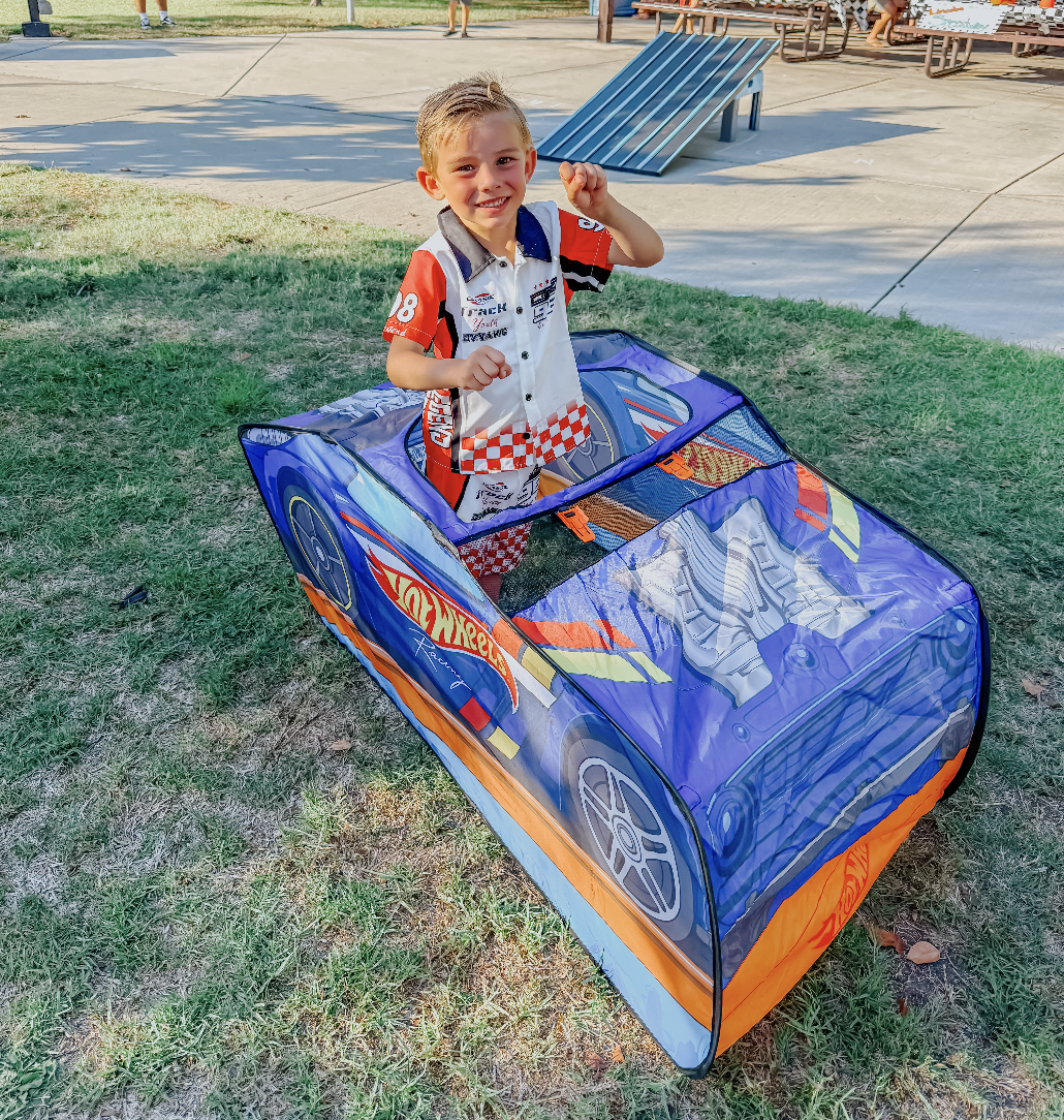 I bought this little pop up tent car on amazon and it was honestly the highlight of the party. There were 4 or 5 kids squished into it at once! It did get totally trashed so if you plan to buy one for your party be prepared that it wont survive the party.