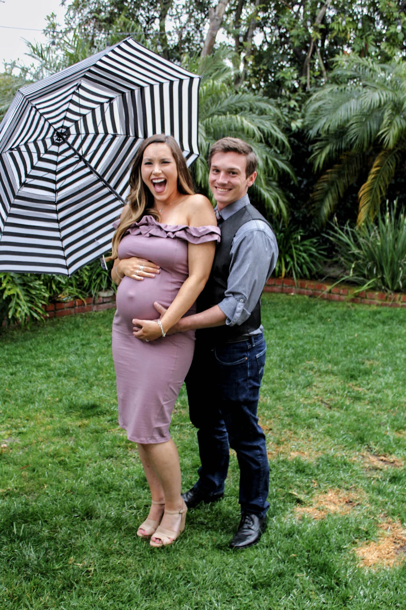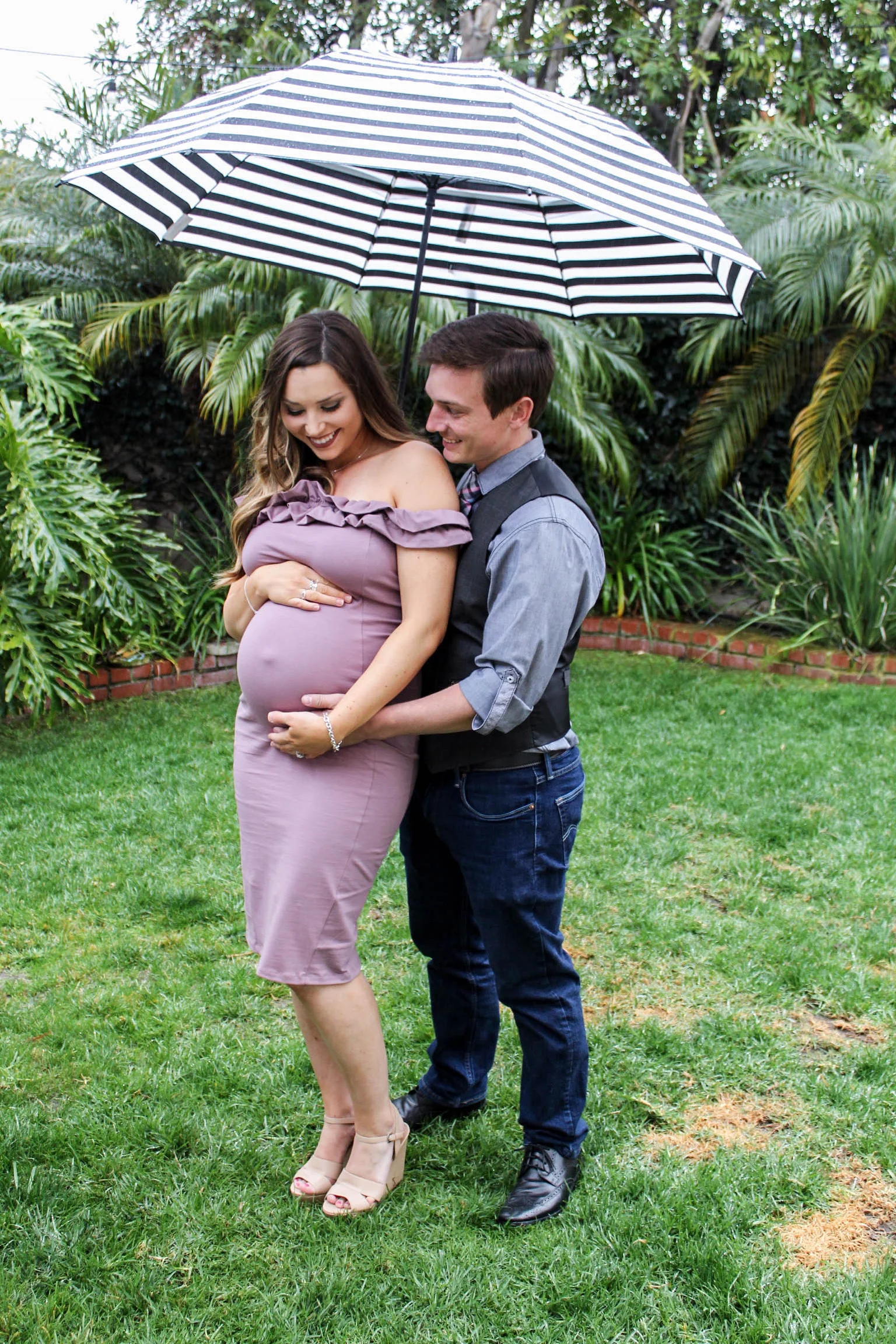 Because Nick and I were working around the clock on unpredictable schedules, we didn't know if we were going to have time for an actual maternity shoot! We decided that in case we never got around to it, we would have a mini photoshoot after Carolines bridal shower. We weren't planning to take pictures in the rain but since we didn't know if there would be another chance, we went for it anyways! It ended up being so much fun! Nick being his usual goofy self, can't help but to mess around during pictures so we ended up getting some really fun candids!